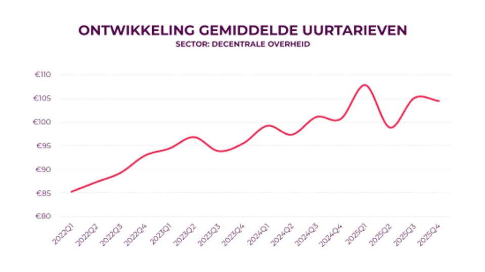 De gemiddelde uurtarieven van zelfstandige professionals bij zowel de centrale als decentrale overheid blijven stijgen. Vooral voor hooggekwalificeerde kennisfuncties zijn overheden bereid hogere tarieven te betalen.